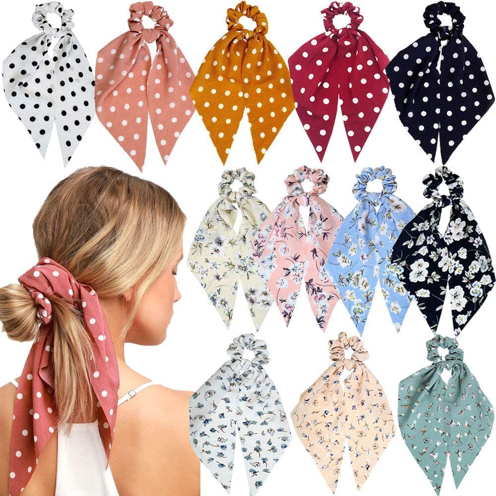 Printed Ribbon Scarf Hair Scrunchies for Girls/Women (Set of 12Pcs)