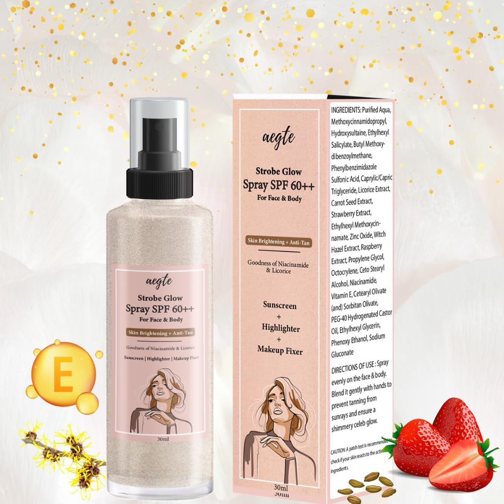 Aegte 3in1 Strobe Glow Spray SPF 60++ Sunscreen Highlighter Makeup Fixer Illuminating & Hydrating