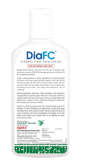 - DiaFC is a specialized Ayurvedic foot care lotion crafted to hydrate, nourish, and protect against diabetic foot complications. Formulated with natural herbal extracts, it prevents dryness, reduces inflammation, and promotes skin regeneration for enhanced foot health in diabetic individuals.