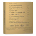 - Gold Facial Face Cleanser:Aqua, Cymbopogon martini oil, aloe barbadensis leaf extract, Grandi's seed extract, citrus medical Limonum extract, and citrus Aurantium oil Gold FacialProtein Bleach: Dried Yoghurt, Soya Protein, Vitamins A, C & E & Minerals. Gold Facial AHA Gel:Extracts of garlic, clove, extract of Witch Hazel, Rose, Organic Fruit Acid, Vitamin C, and pure essential oil of Rose Gold Radiance Gel:Extracts of Rose, Enzymes and pure essential oils of Patchouli, Grapefruit & Neroli Gold FacialSkin Serum: Apricot, Elder Flower, Carrot, Basil, Jasmine, and Organic Fruit Acid Gold FacialNourishing Cream:Extracts of rosemary, jasmine, Vitamins A, C & E, and pure essential oils of geranium, vetiver, and peppermint. Gold FacialFace Pack:Extracts of green tea, lemon, carrot, Vitamins A, C & E, and pure essential oils of grapefruit and orange.