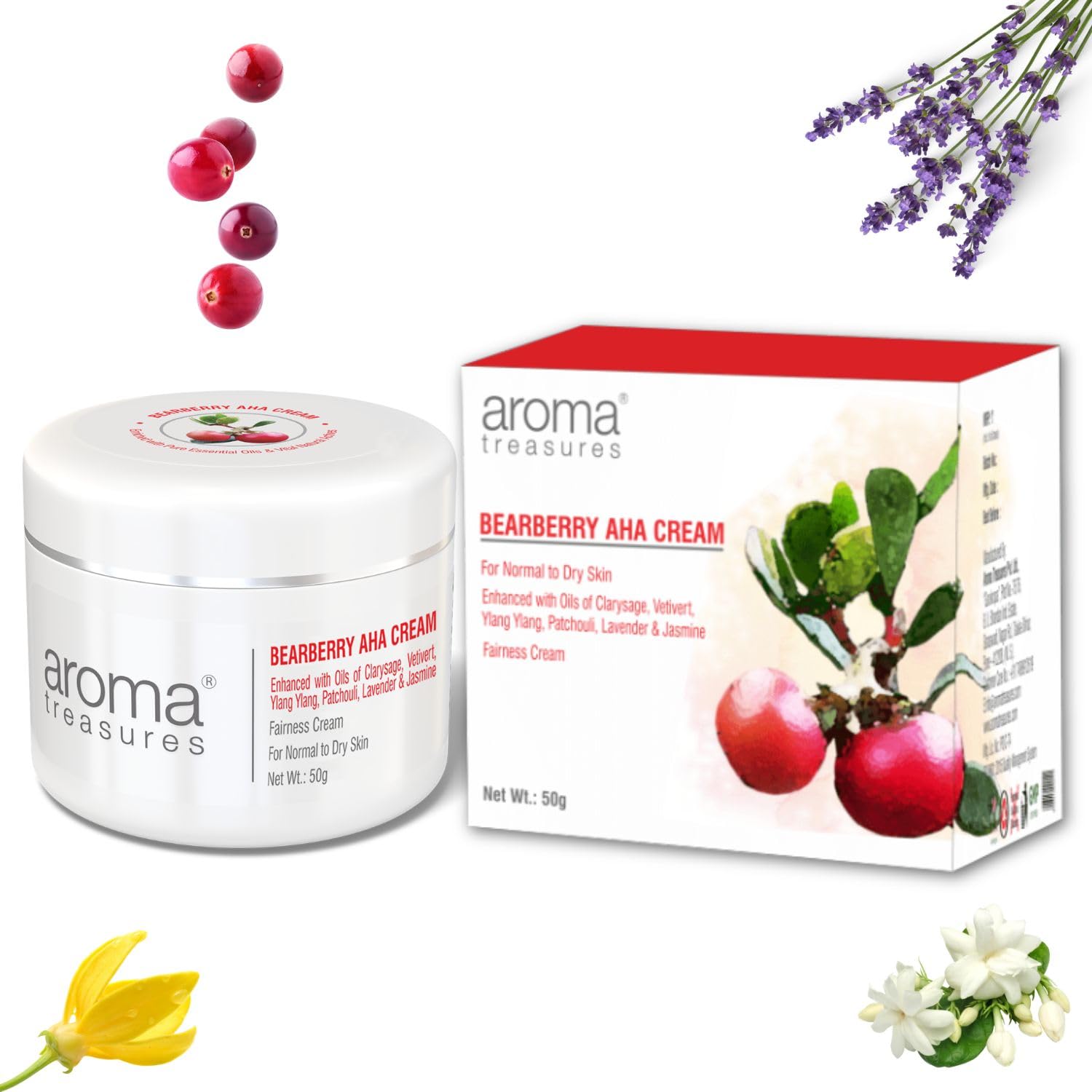 - Aroma Treasures Bearberry AHA Cream is highly reputed and effective in ensuring gradual and long lasting lightening effects on the skin, leaving behind an enchanting glow. Rapid exfoliation of the skin makes it clear, giving it a smooth complexion and making dehydration lines less prominent, giving an overall glowing and fair look.