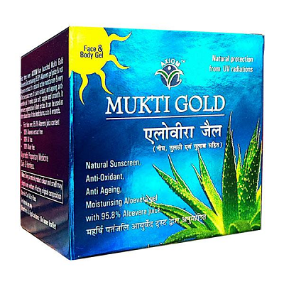 - Axiom Mukti Gold Blue Aloevera Gel is helpful in hydrating and moisturizing skin very well. It is 100% natural it can be used in all weather to prevent dry and patchy skin. It provides effective relief from sunburn, minor burns, skin irritations, insect bites, chafing, itching and dry skin.