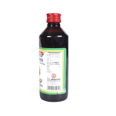 Baidyanath Drakshasava is a liquid Ayurvedic formulation with dry grapes or raisins as the main ingredient. It primarily contains 5-10% self-generated alcohol that helps transport water and alcohol-soluble herbs to the body. It can help improve digestion, relieve constipation, support immunity, and alleviate cough and cold. It is a general tonic and nutritional supplement that is helpful in physical weakness, loss of appetite, sleep disturbances, and headaches.