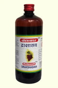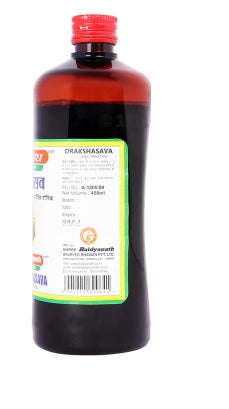 Baidyanath Drakshasava is a liquid Ayurvedic formulation with dry grapes or raisins as the main ingredient. It primarily contains 5-10% self-generated alcohol that helps transport water and alcohol-soluble herbs to the body. It can help improve digestion, relieve constipation, support immunity, and alleviate cough and cold. It is a general tonic and nutritional supplement that is helpful in physical weakness, loss of appetite, sleep disturbances, and headaches.