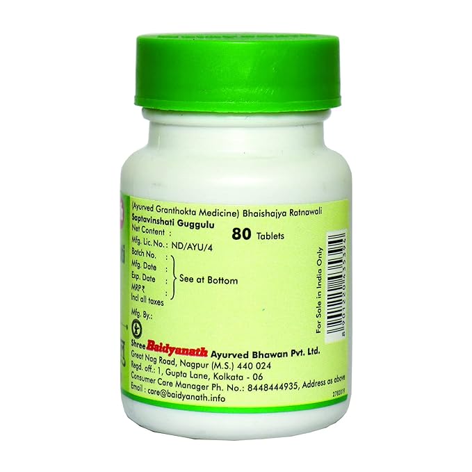 - Baidyanath Saptavinshati Guggulu Tablet is made using 7-ayurvedic ingredients that help heal wounds, sinus, and skin diseases.
