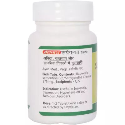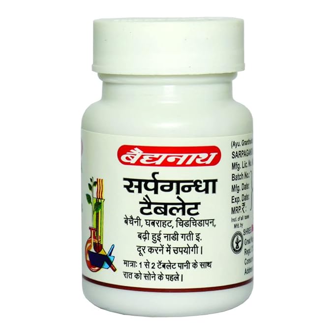 Baidyanath Sarpagandha Tablet is an ayurvedic formulation that helps in the management of hypertension and insomnia. It is also used for relieving anxiety and alcoholism.