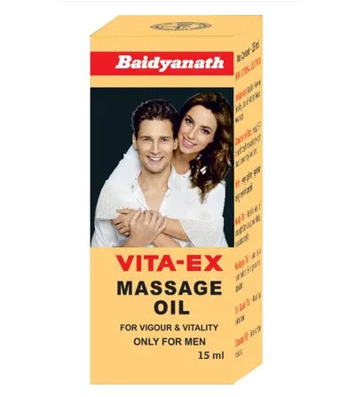 - Gently massage 5-7 drops of Baidyanath Vita EX Massage Oil on the male organ and the pubic region for half an hour or more before beginning with the sexual intimation.