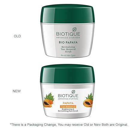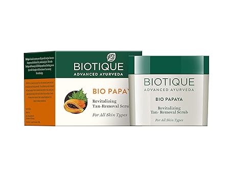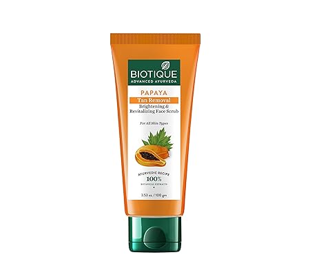 - Biotique Papaya Tan Removal Brightening & Revitalizing Face Scrub, a skincare essential designed to transform your complexion.