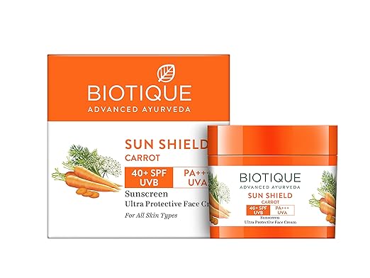 - Biotique Bio Carrot 40+Spf Uva/Uvb Sunscreen Ultra Soothing Face Cream For All Skin Type