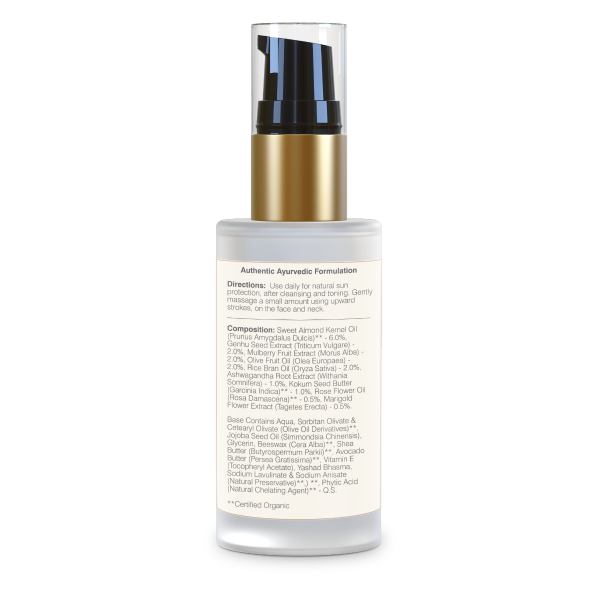 - This Light Day Lotion is a superbly light moisturizer, which contains aromatic Rose Oil and soothing Marigold extracts that calm the skin. It is blended with highly emollient Plum Seed Oil and Rice Bran Oil to ensure intense hydration and cell renewal. Yasada Bhasma, a natural sunscreen and herb infused derivative, is the source of SPF 25 which offers long-lasting protection from the harsh rays of the Sun.