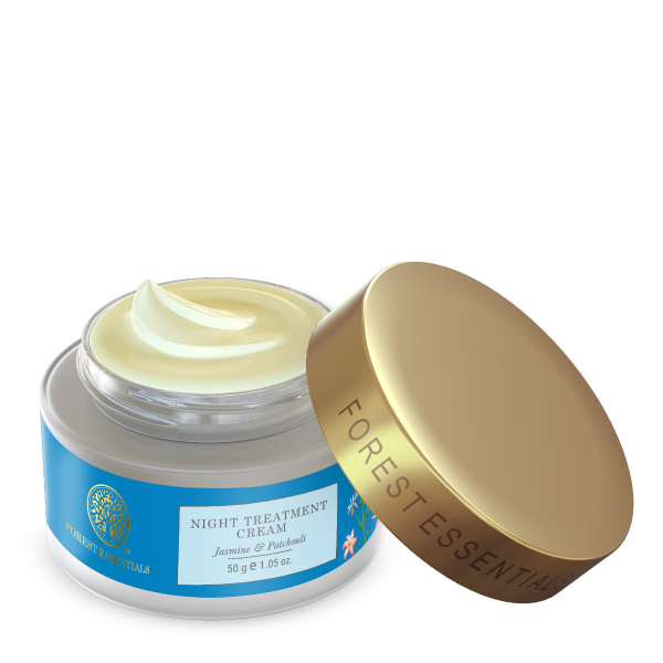 - The Forest Essentials Night Treatment Cream Jasmine & Patchouli is a unique Ayurvedic formula that blends the pure essential oils of Jasmine and Patchouli to nourish combination to oily skin. It is blended with Vitamin C, Anantmool and antioxidant rich herb infusions, which help repair damaged skin cells, improve the skin's natural elasticity while leaving it radiant. This Ayurvedic night treatment cream helps soothe the skin, neutralize oil production and give it an even tone.
