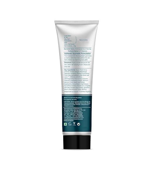- This moisture rich, natural Shaving Cream generates a creamy lather that helps protect the skin from irritation, by improving razor glide. Enriched with the revitalizing properties of fresh Sandalwood paste, fresh Citrus extracts and Aloe Vera juice, it gently soothes and moisturizes the skin for a close and comfortable shaving experience.