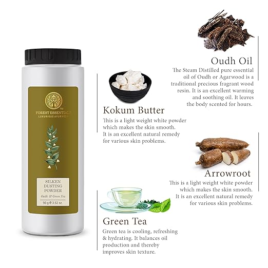 Details about Forest Essentials Silken Dusting Powder Oudh & Green Tea - 90 GM