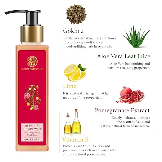 Benefits Of Forest Essentials Silkening Shower Wash Iced Pomegranate & Kerala Lime
