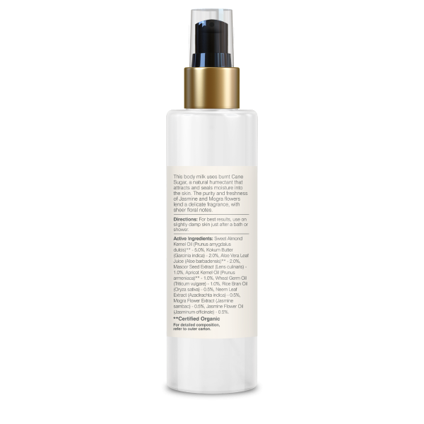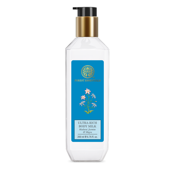 - The Forest Essentials Ultra-Rich Body Milk Madurai Jasmine & Mogra is infused with the purity and freshness of Jasmine and Mogra flowers that have a delicate fragrance with sheer floral notes. This body milk is infused with burnt Cane Sugar, Beeswax, Cream of Milk and Apricot Oil that seal the moisture in the skin, for a supple and plump finish.