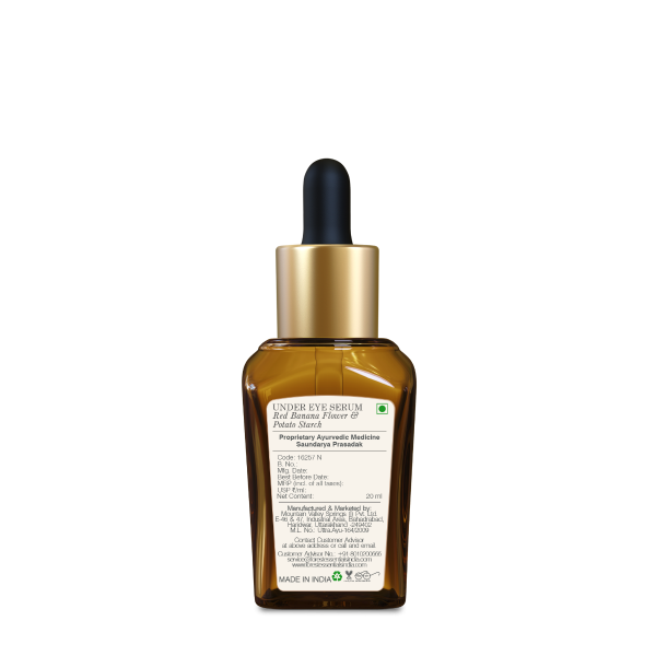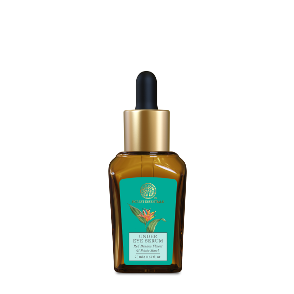 - The Forest Essentials Under Eye Serum Red Banana Flower & Potato Starch uses highly effective Ayurvedic herbs that diminish the appearance of puffy eyes, fine lines and dark circles. It is enriched with potent extracts of Coffee Bean, Red Banana flower, Potato Starch and Wheat Protein, to boost cellular repair, for a youthful appearance.