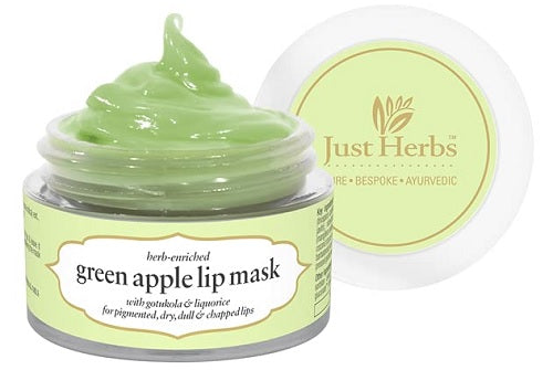 - Just Herbs Ayurvedic and Vegan Lip Mask is enriched with the anti-pigmentation properties of mulethi and gotukola, the goodness of exotic butters of aamra (mango) and vrikshamla (garcinia indica) along with the nourishing action of cold-pressed oils of coconut, sesame and sweet almond. It helps repair damaged, dry and pigmented lips overnight. Intensely hydrating, this mask is sure to give you soft and luscious lips. Available in flavours like rose, peach, mint, green apple and cardamom.