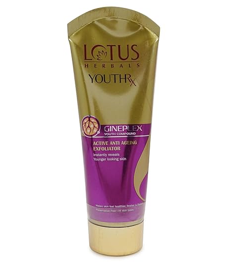 - The Lotus Herbals YouthRx Active Anti Ageing Exfoliator is a testament to a revolutionary development in ‘Green Science’. It comes with the ‘Gineplex Youth Compound’ derived from potent natural ingredients and is clinically proven to accelerate the process of skin lifting, firming and protective skin action.