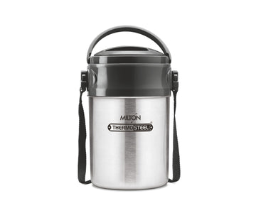- 4-tiered stainless-steel tiffin containers in a collapsible frame.