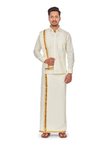 - This Silk Wedding Collection contains Double Layer Gold Jari Flexi Dhoti, Shirt with Gold Jari Nerial.