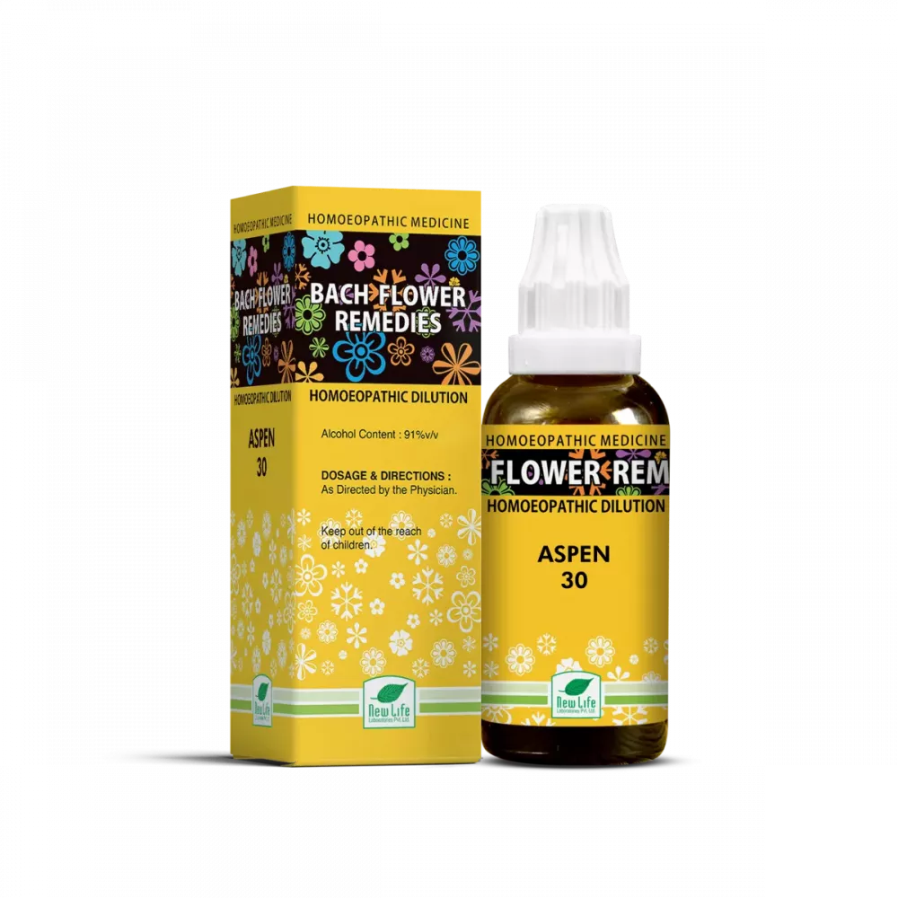 New Life Bach Flower Aspen 30 is a homoeopathic medicine with helps in relieving inner fears. Aspen helps to deal with night-time fear, related to dreams and night terrors. It helps with People who deal with sleeping disorders and OCD. It is a safe and natural homoeopathic method.