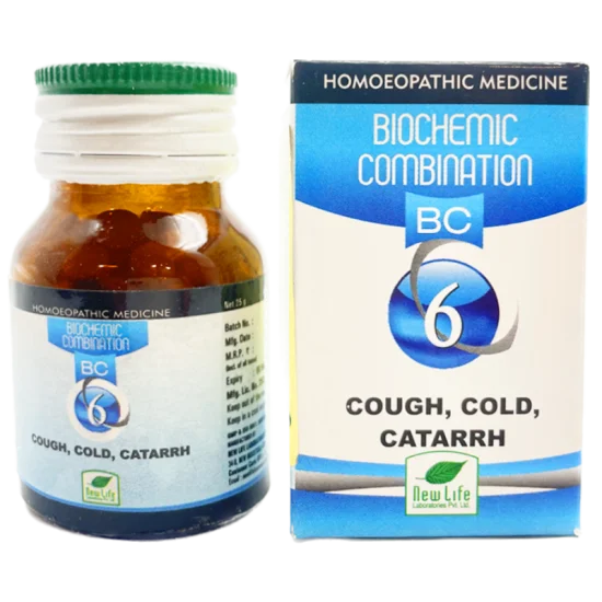 New Life Bio Combinationno.6 Cough,Cold & Catarrh helps to address symptoms of cough, cold, headache, difficulty in breathing, chest pain, bronchitis, and cough with the rattling sound of mucous, this bio-combination offers holistic support.