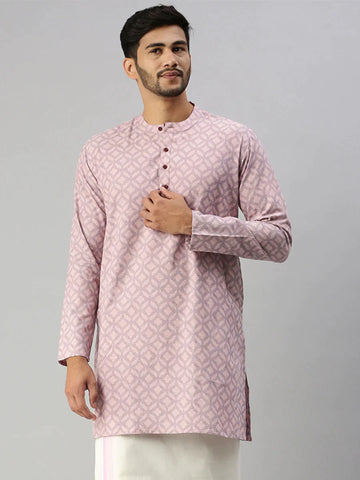 Ramraj Mens Full Sleeves Pink & Navy Medium Length Pocket Kurta J36