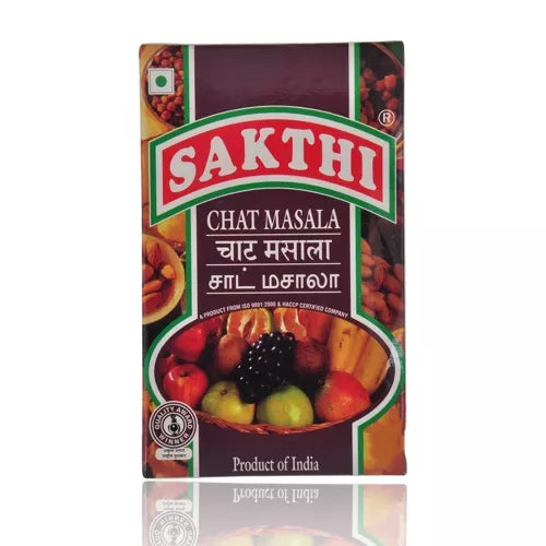 - Sakthi chat masala contains the essential materials that indeed makes the chat items to taste better and with the range of ingredients that it offers on the whole to make the chat items to taste awesome with the unique spices and the ingredients used.