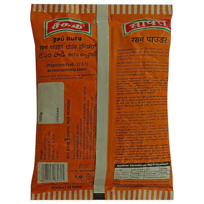 Sakthi Rasam Powder is a blend of aromatic spices & herbs that were traditionally used for making classical rasam. The use of natural spices and ingredients has made this fine quality product lip smacking taste, aromatic and long shelf life. Rasam powder is used to prepare a South Indian delicacy called rasam.