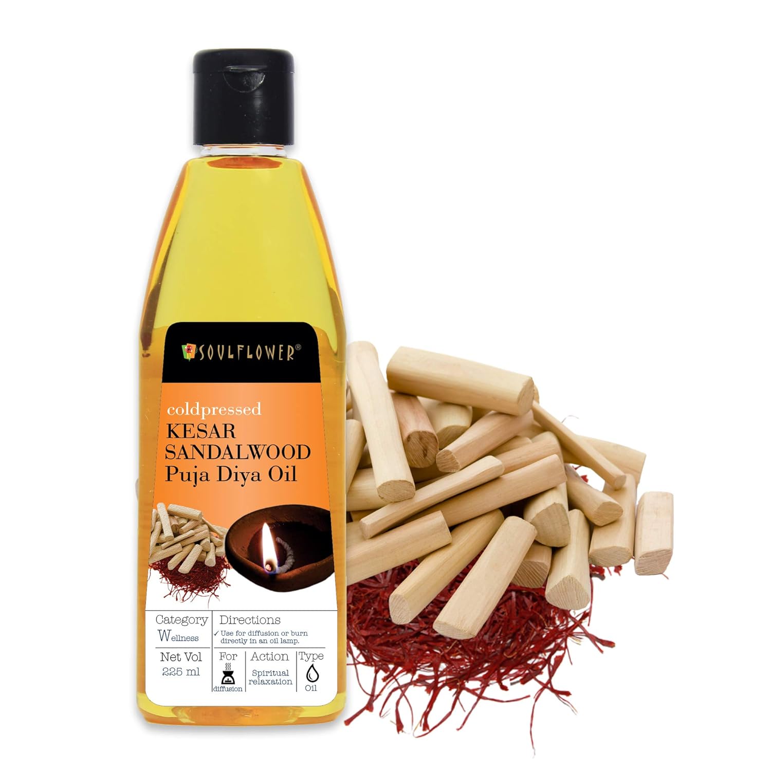 - This mixture can be used in the altar to light your diyas for prayers and special occasions. It is recommended to light an earthen lamp and add 5-6 drops of Soulflower Kesar Chandan Puja Diya Oil before starting prayer or meditation.