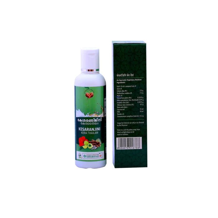 - Vaidyaratnam Kesaranjini Thailam Oil is a natural hair oil and contains natural ingredients used since ancient times for its hair nourishing properties. It is highly useful in premature greying of hair and hair fall. It helps manage itchy scalp and effectively reduces dandruff. Contains natural ingredients with no harsh chemicals, providing safe and effective care to your hair.