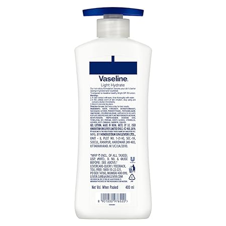 - Vaseline Light Hydrate Serum In Lotion is made up of a unique formula containing Glycerin and Niacinamide which helps moisturize your skin from layers within, leaving a radiant glow on your skin.