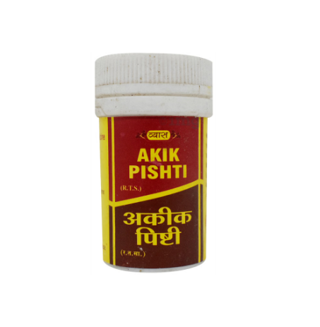 - Vyas Akik Pishti Powder is a traditional Ayurvedic formulation known for its potential health benefits. Akik Pishti is derived from purified and processed Agate (Akik), which is believed to possess several wellness properties. This classical preparation is aimed at supporting overall health and maintaining balance within the body. The meticulous preparation process ensures the efficacy and purity of the product, making it a valuable addition to your wellness routine.
